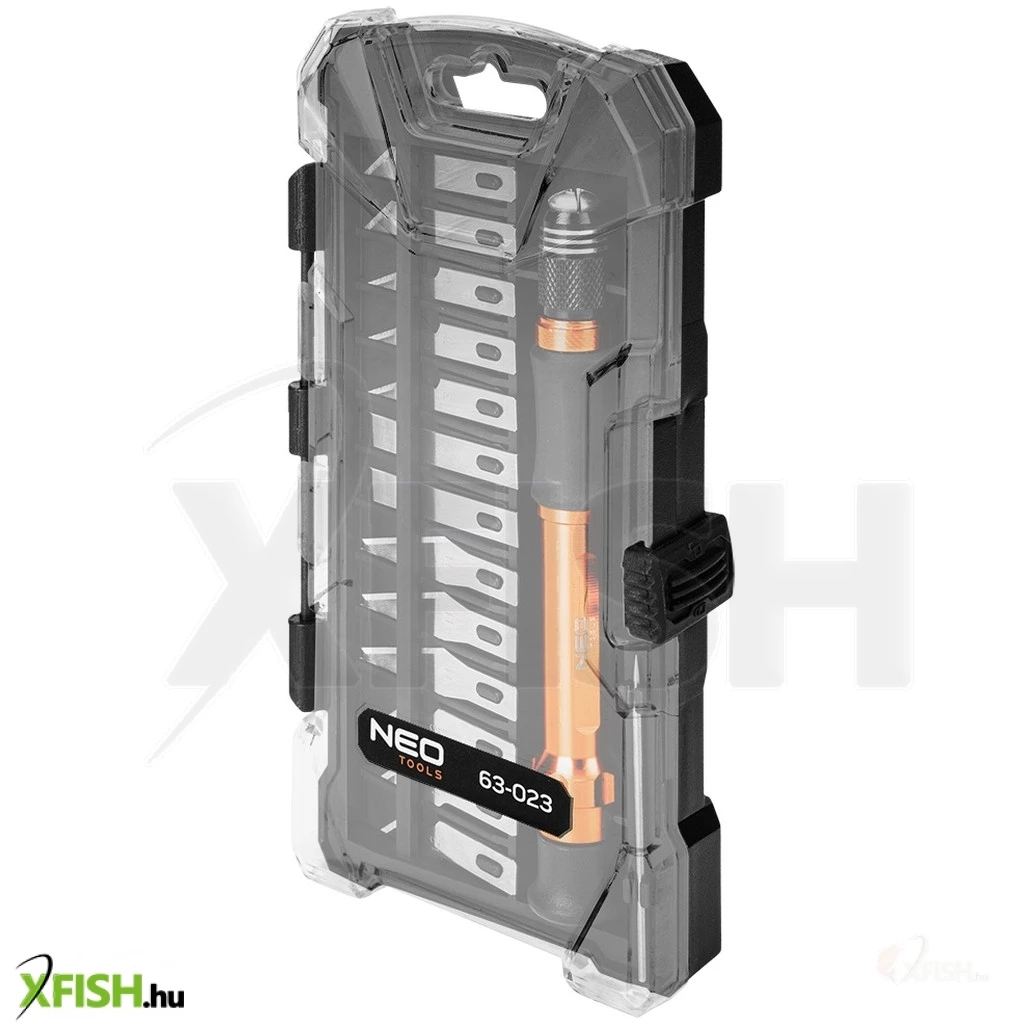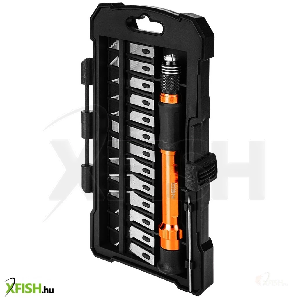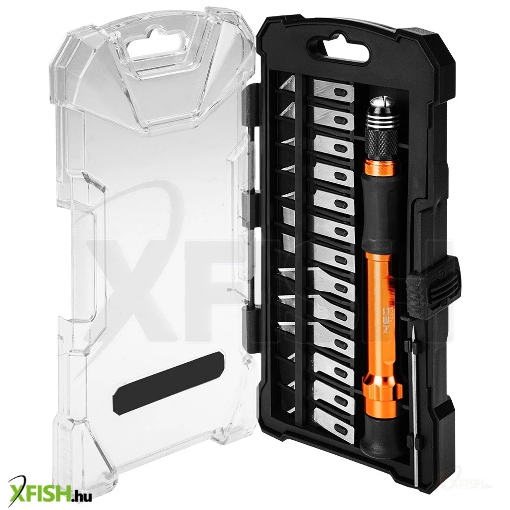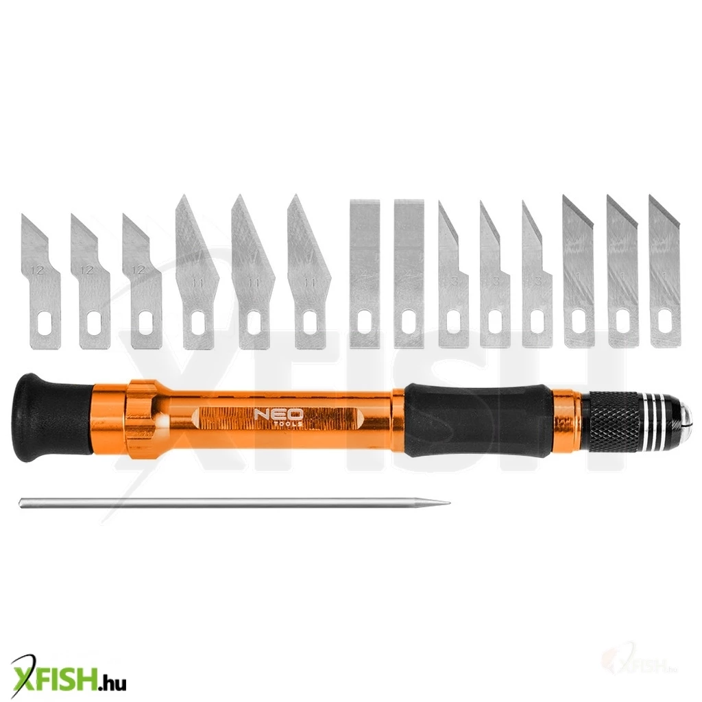 A Neotools 14 darabos dekorkés készlet, alumínium nyéllel, ideális választás barkácsolók és modellezők számára, akik a precíziós munkákban nem szeretnének kompromisszumot kötni. Ez a remek minőségű készlet cikkszám szerint 63-023, tartalmaz 13 különböző pengét és egy ergonomikus alumínium nyelet, amely biztosítja a tartós és kényelmes használatot.