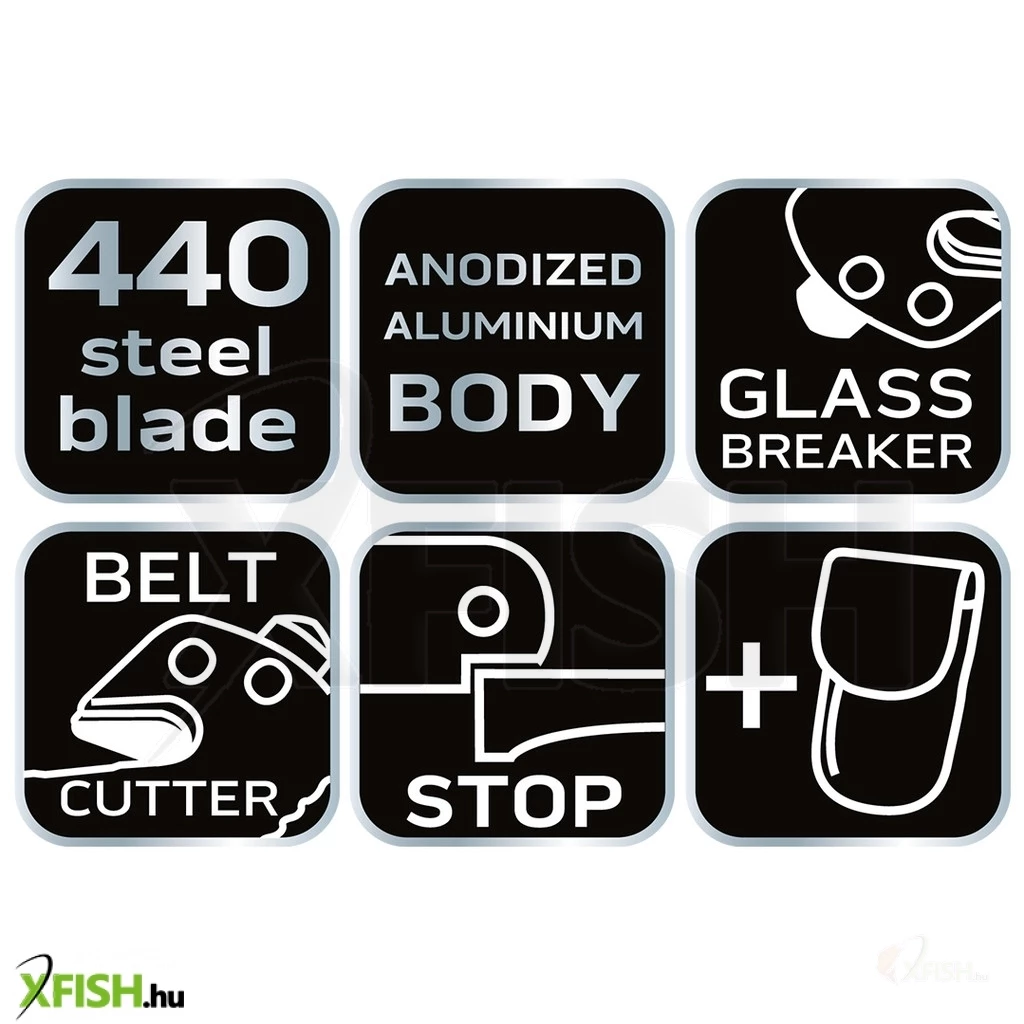 Külön figyelmet érdemel a kés végén található üvegtörő, amely extrém helyzetekben életmentő lehet. Ezen kívül a kés egy praktikus zármechanizmussal is rendelkezik, amely meggátolja a vétlen becsukódást, ezzel növelve a biztonságot. Az összecsukott állapotban mindössze 110 mm hosszú, így könnyedén elfér a zsebben vagy a hátizsákban. Az eszközhöz tartozó nylon tok megkönnyíti a tárolást és szállítást, a rögzítő klipsz pedig biztosítja, hogy a kés mindig kéznél legyen, amikor szükség van rá.