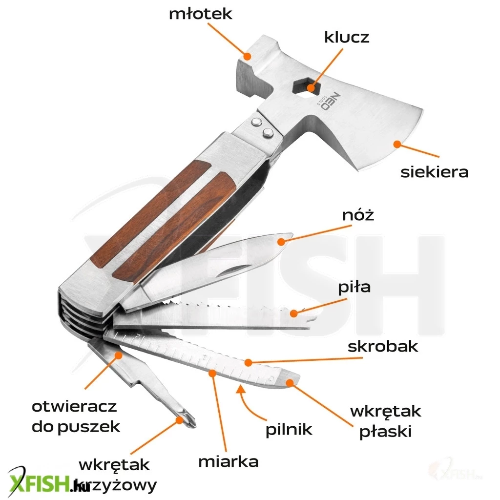 A Neotools multifunkciós szerszám, 11 az 1-ben egy sokoldalú eszköz, amely nemcsak a mindennapi kihívások során állja meg a helyét, hanem a horgászat során is kiváló társ lehet. Ez az innovatív szerszámkészlet aprólékosan átgondolt tervezése révén egyetlen eszközben egyesít számos praktikus használati lehetőséget, így Önnek kevesebb csomagra lesz szüksége induláskor. Az ergonomikus kialakítás biztosítja a kényelmes fogást, ami hosszabb használat során is kényelmes élményt nyújt.