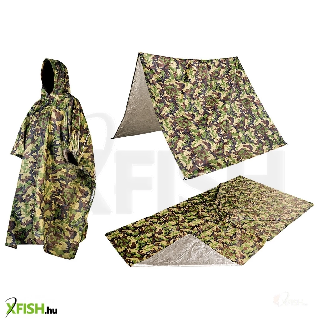 Neotools esőköpeny 3 az 1-ben poncsó, matrac, ponyva, oldalsó rögzítők, terepszínű,xxl méret, 210d poliészter