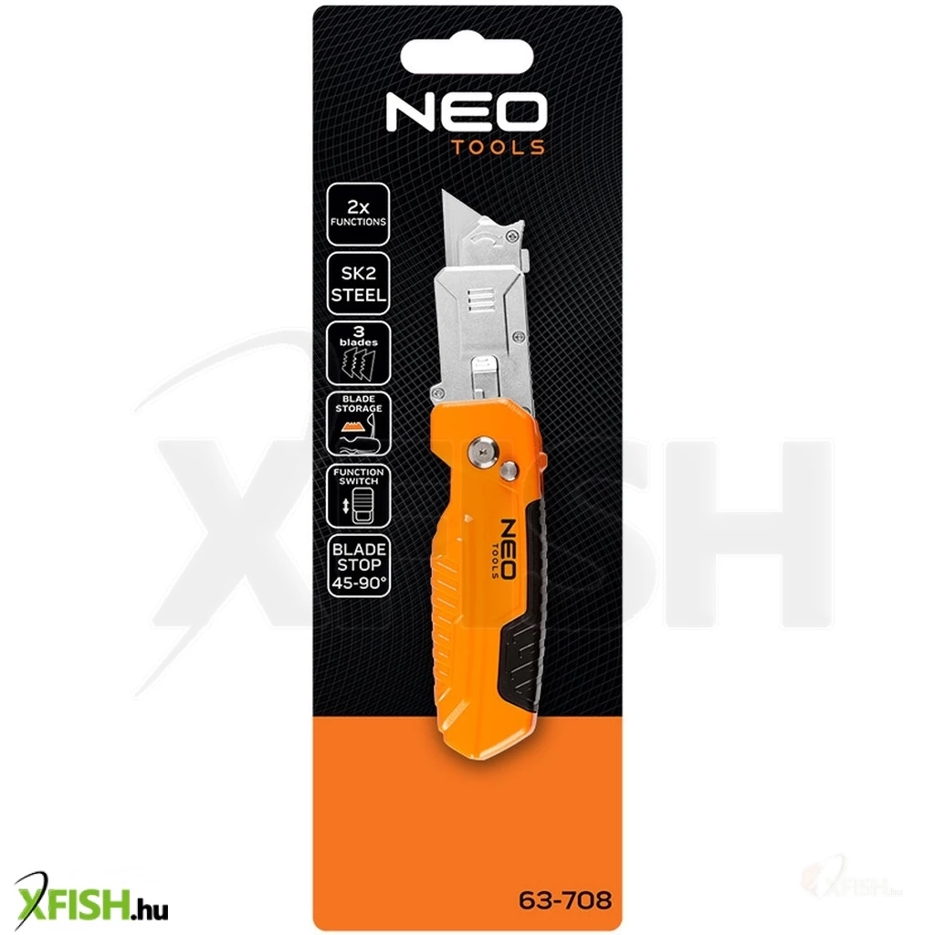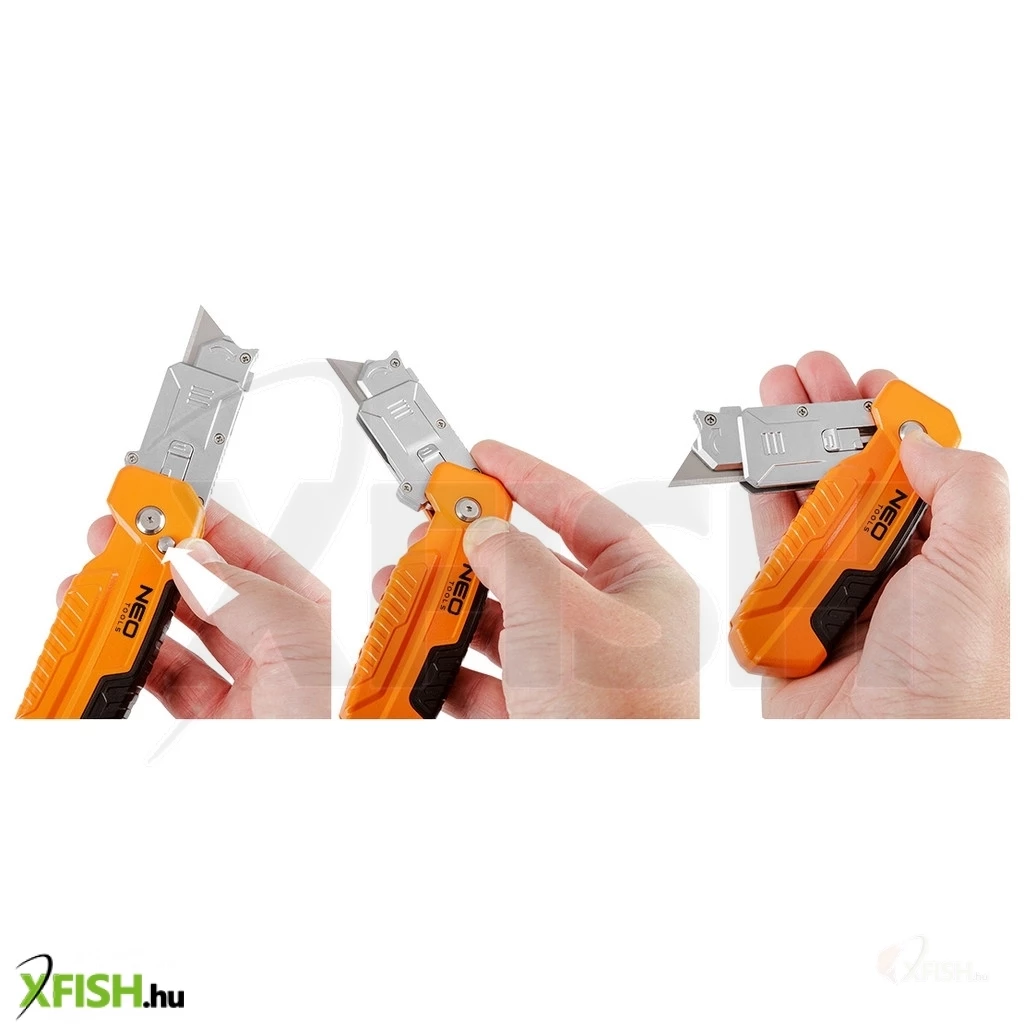 KategóriákKategóriákKerti szerszámok, eszközök Festő, burkoló szerszámok Neotools trapézpengés kés, 90 fokban elfordítható fejjel, vágó és kaparó funkció, összecsukható, aluházas, 2db pengével