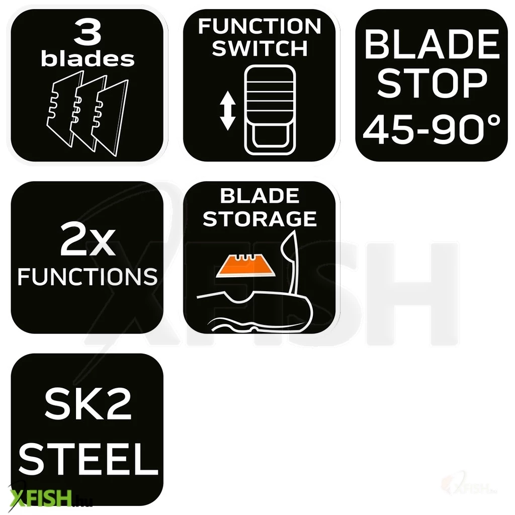 A készlet két darab trapézpengét tartalmaz, így azonnal munkához láthat és szükség esetén gyorsan cserélheti a pengéket. Az összecsukható kialakítás biztonságos tárolást és könnyű hordozhatóságot biztosít, így a kés zsebben vagy szerszámos táskában is könnyedén elfér.