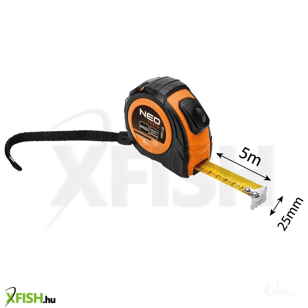 Neotools mérőszalag 5 m/25 mm, acél, autostop + rögzítő