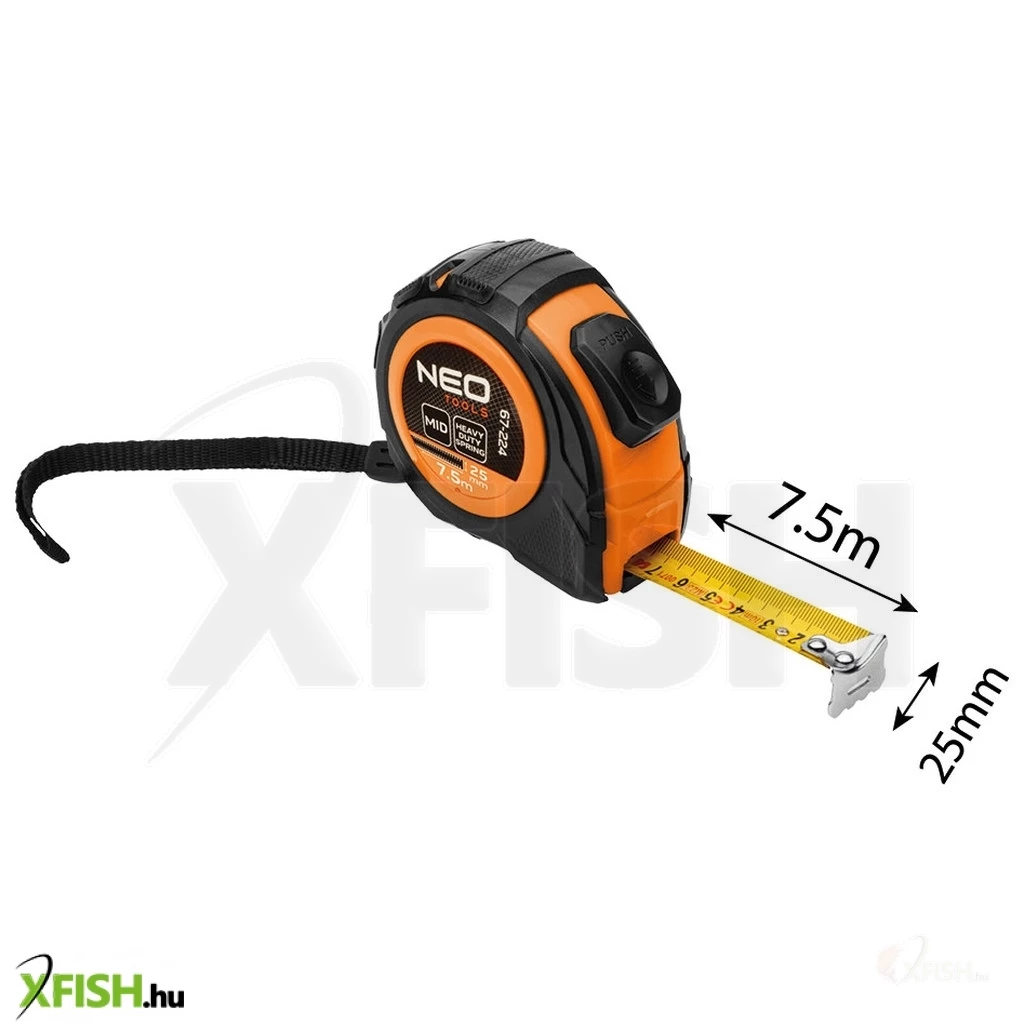 A Neotools mérőszalag 7,5 m/25 mm, acél, autostop + rögzítő a precíz mérési feladatok tökéletes eszköze mind a professzionális, mind az otthoni horgászat rajongói számára. Ez az acél mérőszalag kiváló minőségű, tartós anyagokból készült, amelyek ellenállnak a mindennapi használat során fellépő igénybevételnek. Az acél kialakítás és a robusztus felület biztosítja, hogy a mérőszalag hosszú élettartammal rendelkezzen, így mindig számíthat rá a pontos mérések elvégzésekor.
