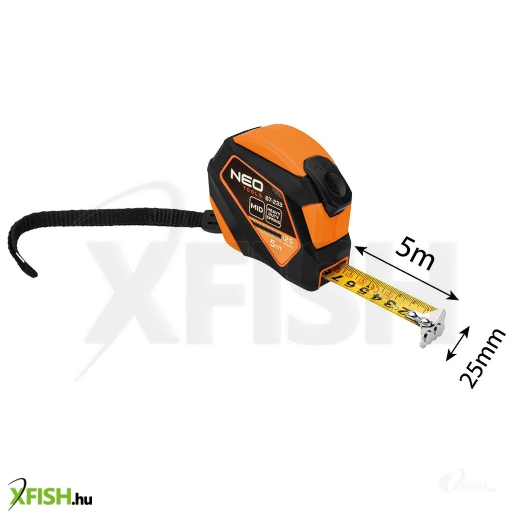 Neotools mérőszalag, 5m/25mm, acél, mágneses, autostop+ rögzítő