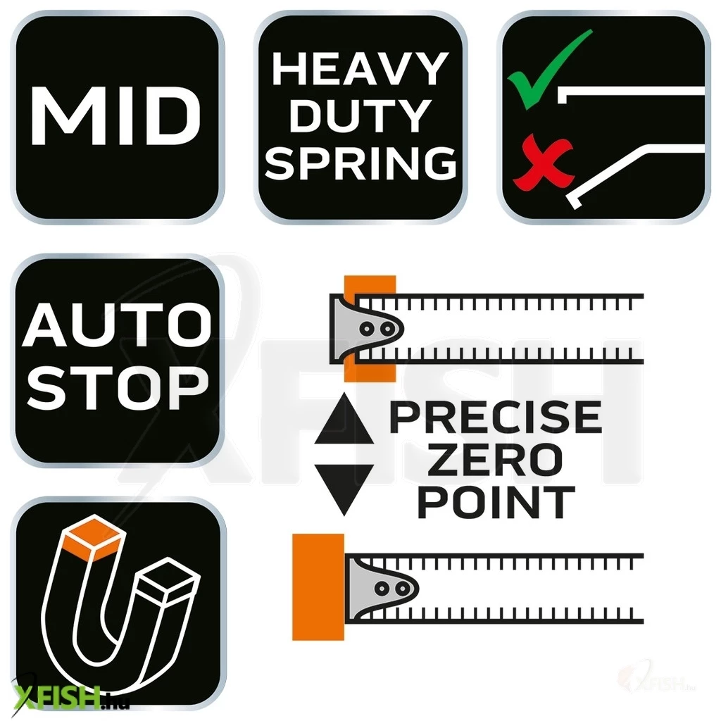 Az autostop funkció egy további előnye ennek a mérőeszköznek, mely automatikusan megállítja a szalag visszahúzódását a pontosabb mérések érdekében. Ez a funkció különösen akkor jön jól, ha hosszabb távolságokat kell mérni, hiszen a szalag mindvégig a helyén marad, megkönnyítve ezzel a munkát.