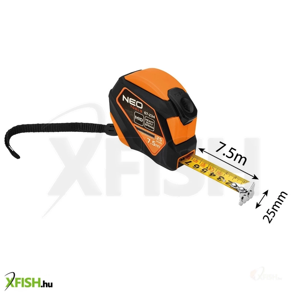 Neotools mérőszalag, 7,5m/25mm, acél, mágneses, autostop+ rögzítő