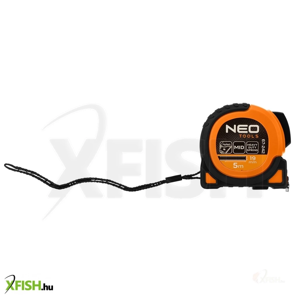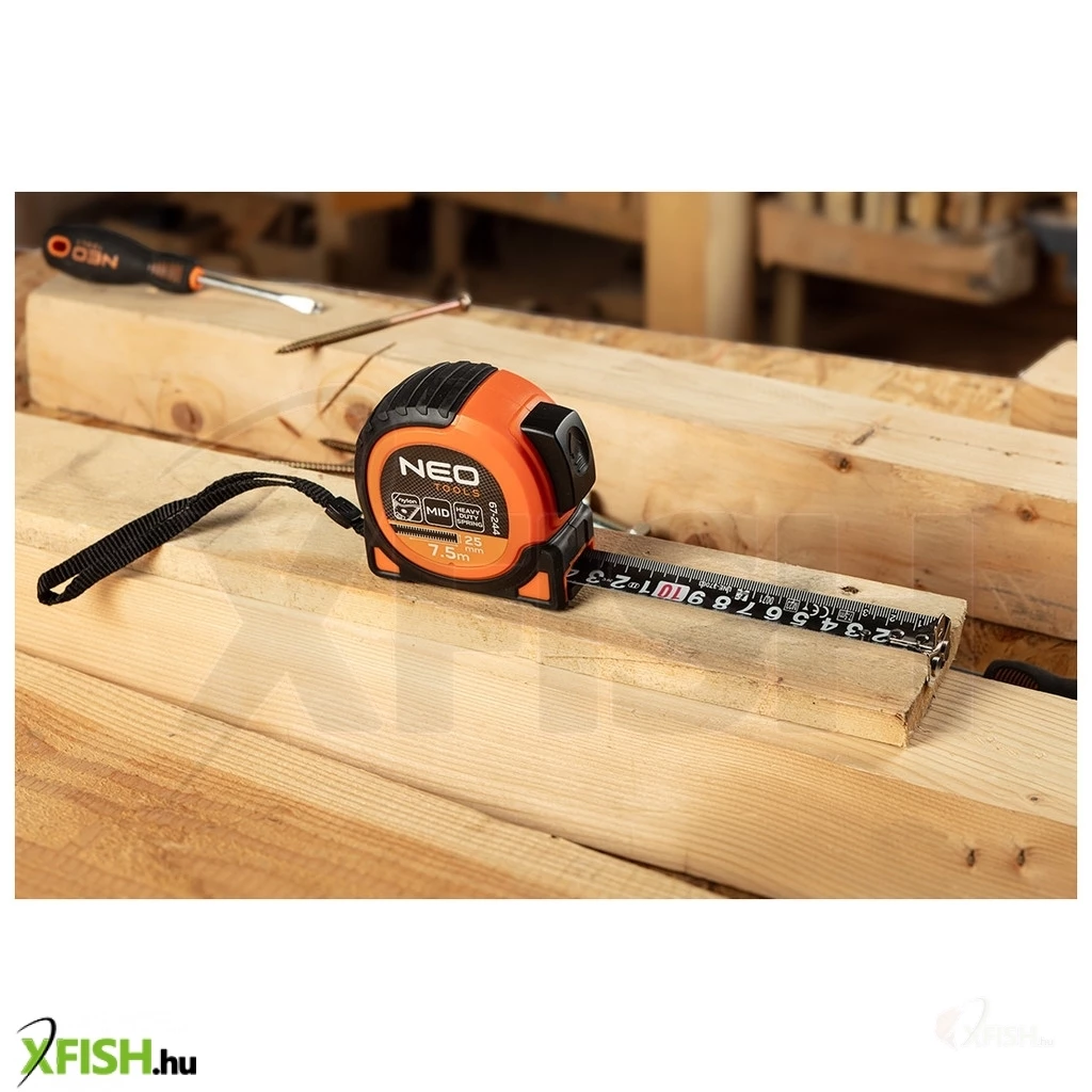 KategóriákKategóriákBarkácsolás, építkezés Mérőszalag, Vízmérték Neotools mérőszalag, 5m/19mm, erősített rugós, acél, fekete szalag fehér nagyított skálával, mágneses, autostop+rögzítő