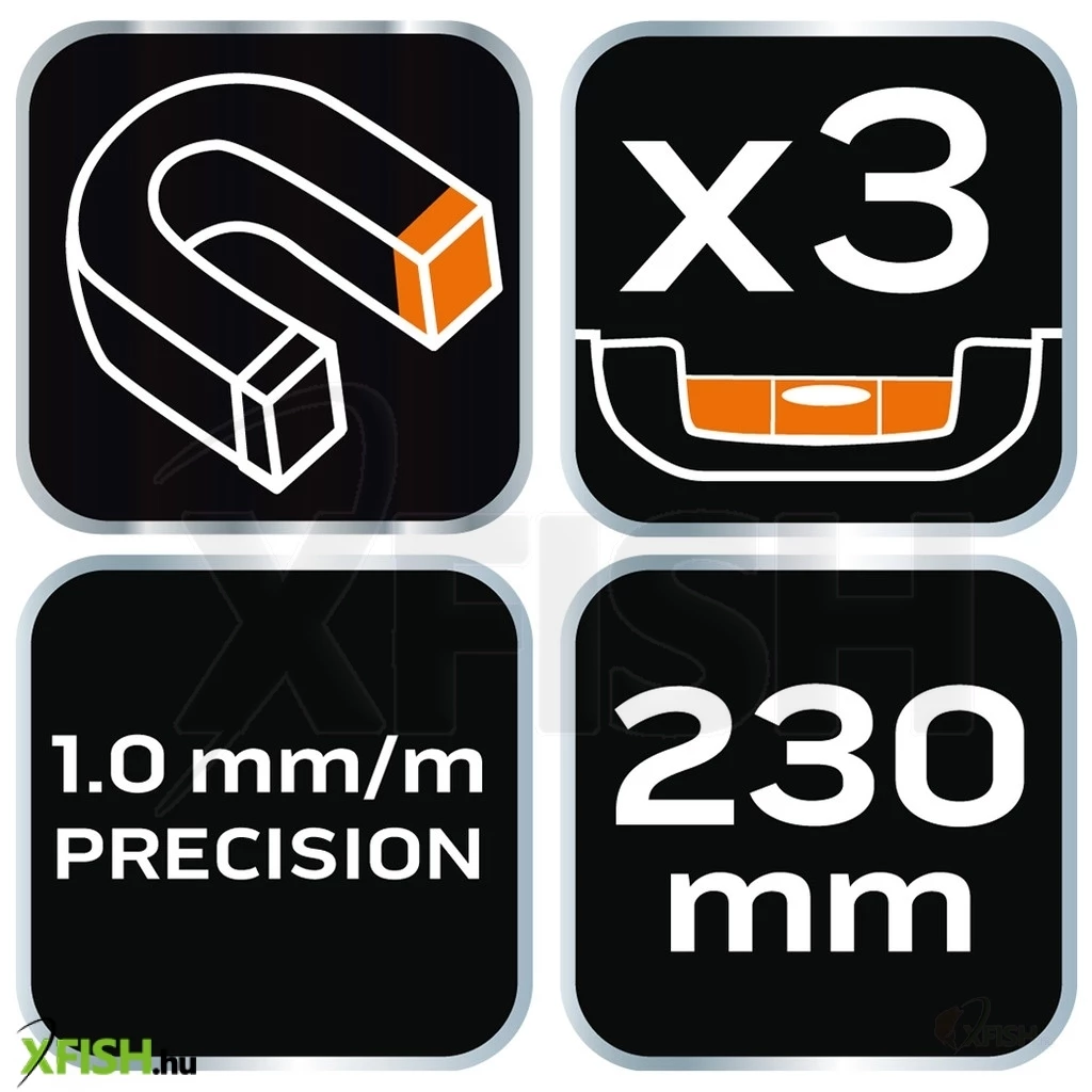 A vízmérték tartós, kiváló minőségű anyagokból készült, melyek hosszú távú használatot és megbízhatóságot garantálnak. A 230 mm hosszúságú eszköz beépített mágnessel rendelkezik, ami különösen hasznos fémfelületeken történő méréskor. A mágnes segíti a stabil rögzítést és az eszköz biztos tartását, így könnyebbé teszi a munkavégzést.