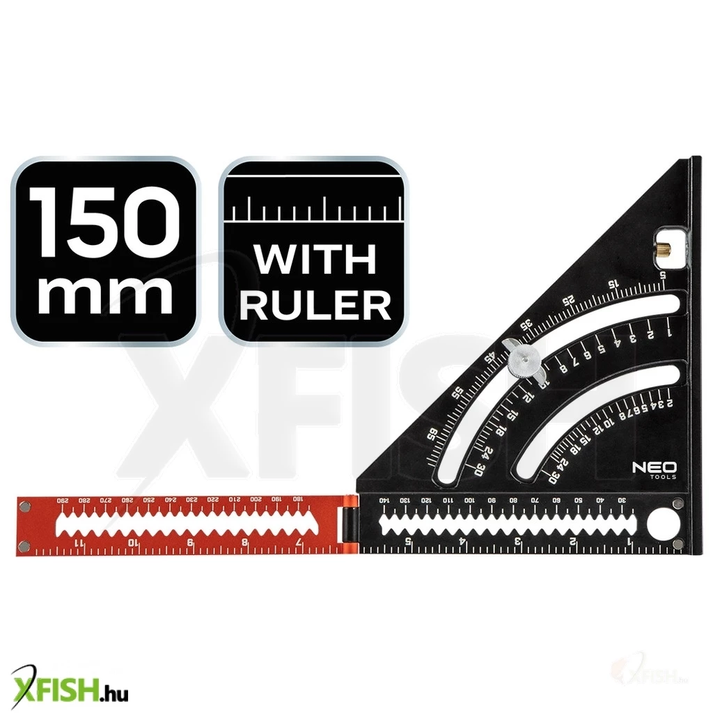 A Neotools talpas derékszög egy precíziós mérőeszköz, amely kiváló segítség bármilyen mérési feladathoz a műhelyben vagy a kamu horgászathoz! Alapanyaga tartós alumínium, amely biztosítja a hosszú élettartamot és megbízhatóságot. Könnyű súlyának köszönhetően egyszerűen kezelhető, így tökéletes választás szakemberek és hobbi barkácsolók számára egyaránt. Praktikus kialakítása révén a derékszög segítségével könnyedén ellenőrizhető a szögek pontossága, ami elengedhetetlen a precíz munkavégzéshez.