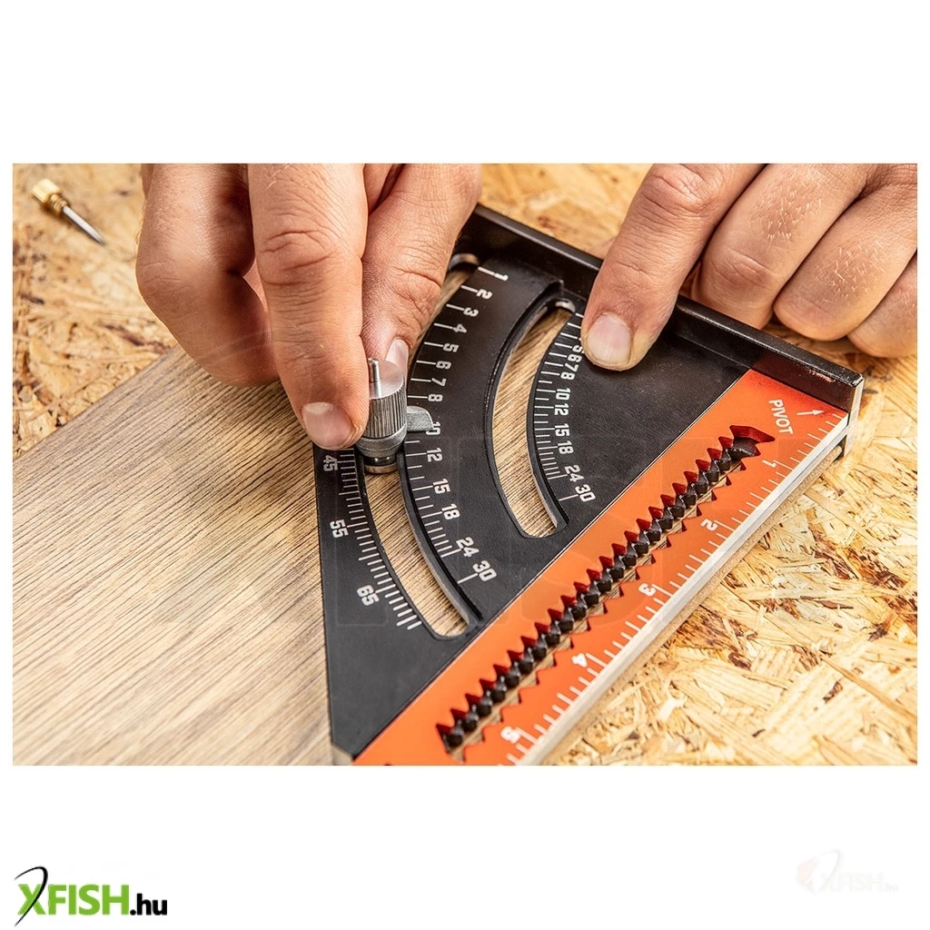 A kiegészítő vonalzó még több lehetőséget nyújt a mérés és a jelölések egyszerű elvégzéséhez. Az integrált mérőskála segíti a pontos méréseket, így biztosítva a precíz eredményeket minden alkalommal. A 45 fokos szár különösen hasznos a ferde vágások és jelölések során, lehetővé téve a gyors és pontos munkavégzést bármilyen munkadarab esetén. Kompakt méretének köszönhetően, ami mindössze 185 mm, könnyen elfér a szerszámosládában vagy a zsebben, így mindig kéznél van, amikor szükség van rá.