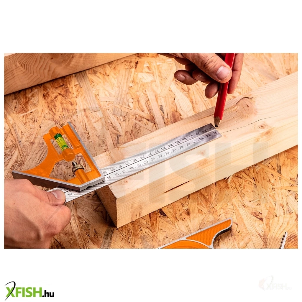 A rozsdamentes acélból készült vonalzó biztosítja a hosszú távú tartósságot és a pontos mérési eredményeket. A 300 mm hosszú rozsdamentes acél vonalzó cm és coll beosztással rendelkezik, amely széleskörű alkalmazhatóságot biztosít. Az alumínium mozgófej szögmérőkkel és a beépített vízmértéklibellával teszi lehetővé a különféle szögek könnyű és pontos beállítását.