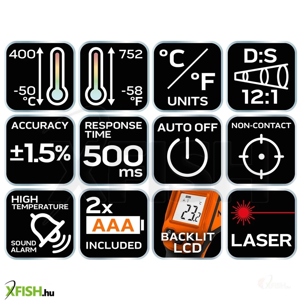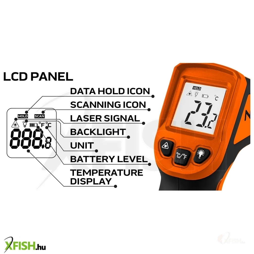 Neotools infra hőmérő, 50-400 c, folyadék, levegő, test