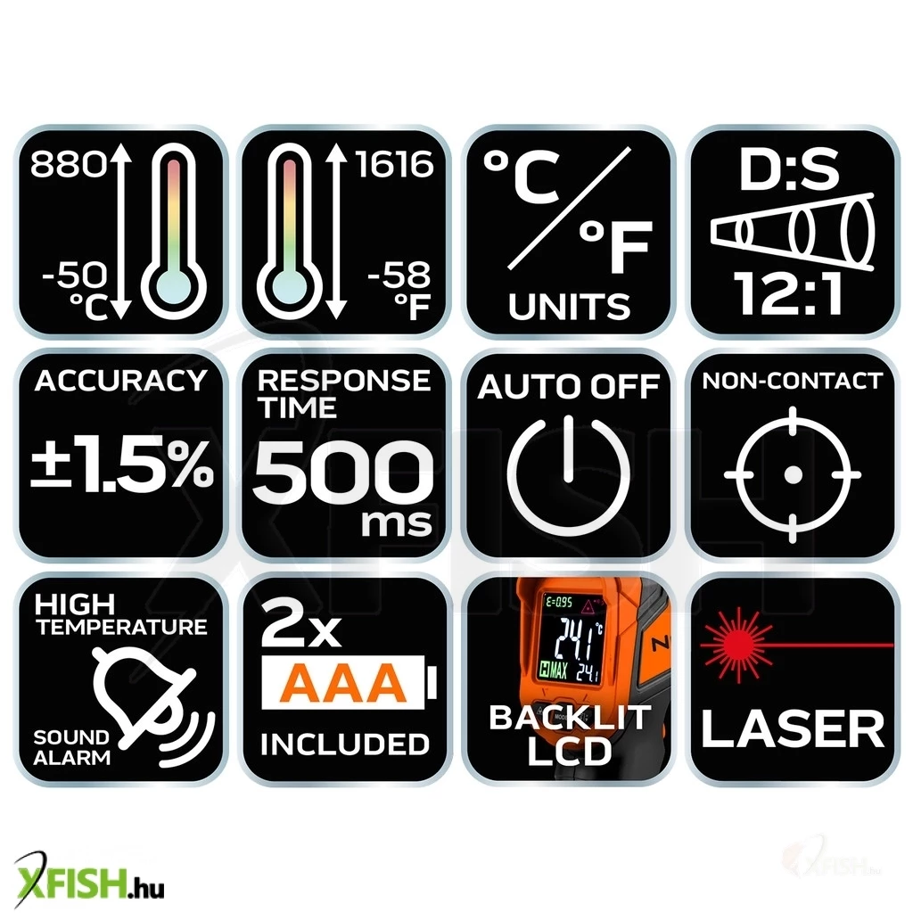 Neotools infra hőmérő, 50-880 c, folyadék, levegő, test