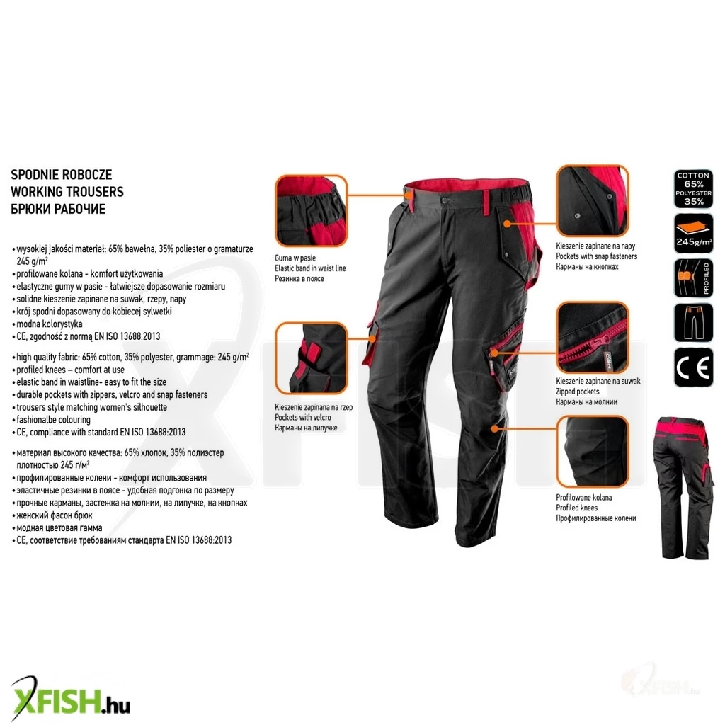 A női munkanadrágot divatos színek és modern kialakítás jellemzi, ami megfelel a legújabb trendeknek anélkül, hogy a funkcionalitás rovására menne. A CE tanúsítvány garantálja a termék biztonságos használatát és megfelelését a legszigorúbb európai szabványoknak.
