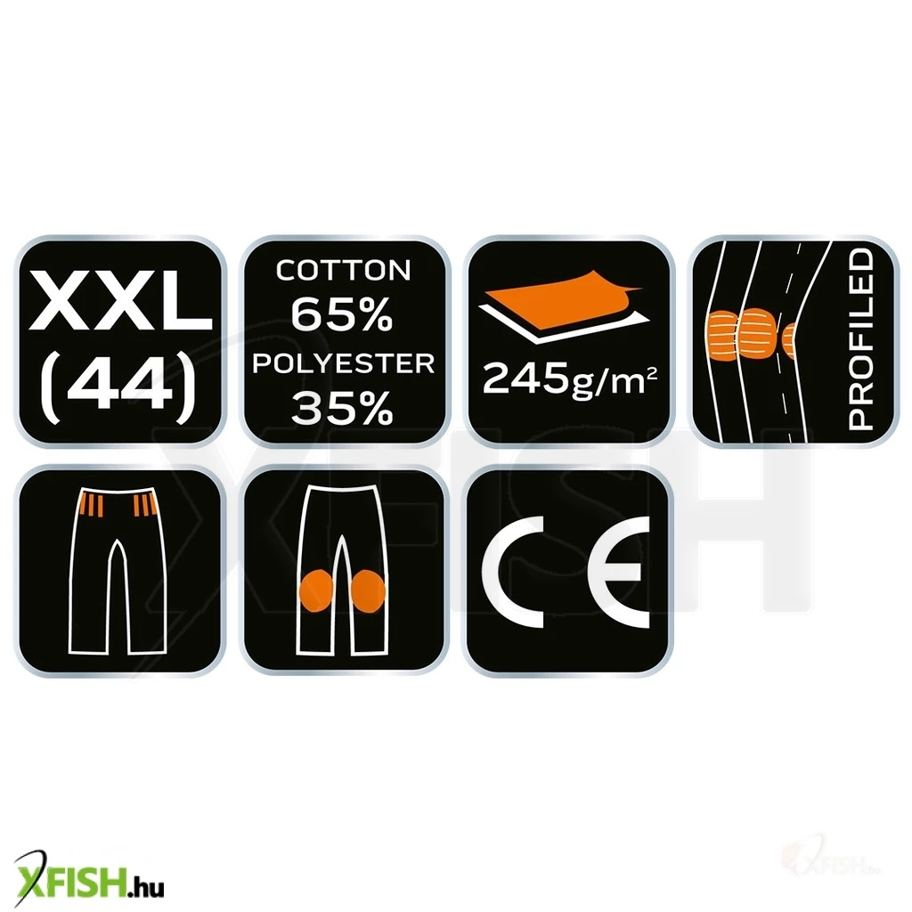 A nadrág anyagösszetételében 65% pamut és 35% poliészter található, amely nemcsak tartósságot, hanem kiváló légáteresztő képességet is biztosít. Ez a speciális keverék, melynek vastagsága 245 g/m2, biztosítja a munkaruhának a szükséges szilárdságot, ugyanakkor könnyű érzést nyújt a viselőjének. A nadrág térd része megerősített kialakítással rendelkezik, ami hozzájárul a nagyobb védettséghez és rugalmassághoz a munkavégzés során.