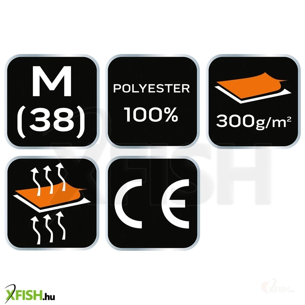 A pulóver három cipzáros zsebében biztonságosan tárolhatók a kisebb tárgyak, amelyekre a horgászat során szükség lehet, mint például a kulcsok, telefon vagy csalik. E zsebek praktikus elhelyezése lehetővé teszi a könnyű és gyors hozzáférést. A termék CE tanúsítvánnyal rendelkezik, amely garanciát jelent a magas minőségre és a megbízhatóságra.