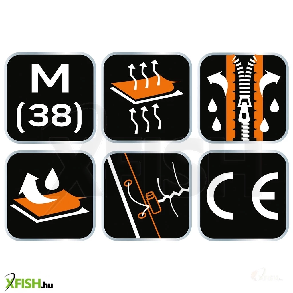 A gyakorlati szempontokat szem előtt tartva, a kabát három cipzáros zsebbel van ellátva, ideálisan alkalmasak kisebb kiegészítők, horgászfelszerelések biztonságos tárolására. Az azonosító címke segít a dzseki gyors azonosításában, ami különösen hasznos lehet, ha több hasonló kabát is van a csapatban.