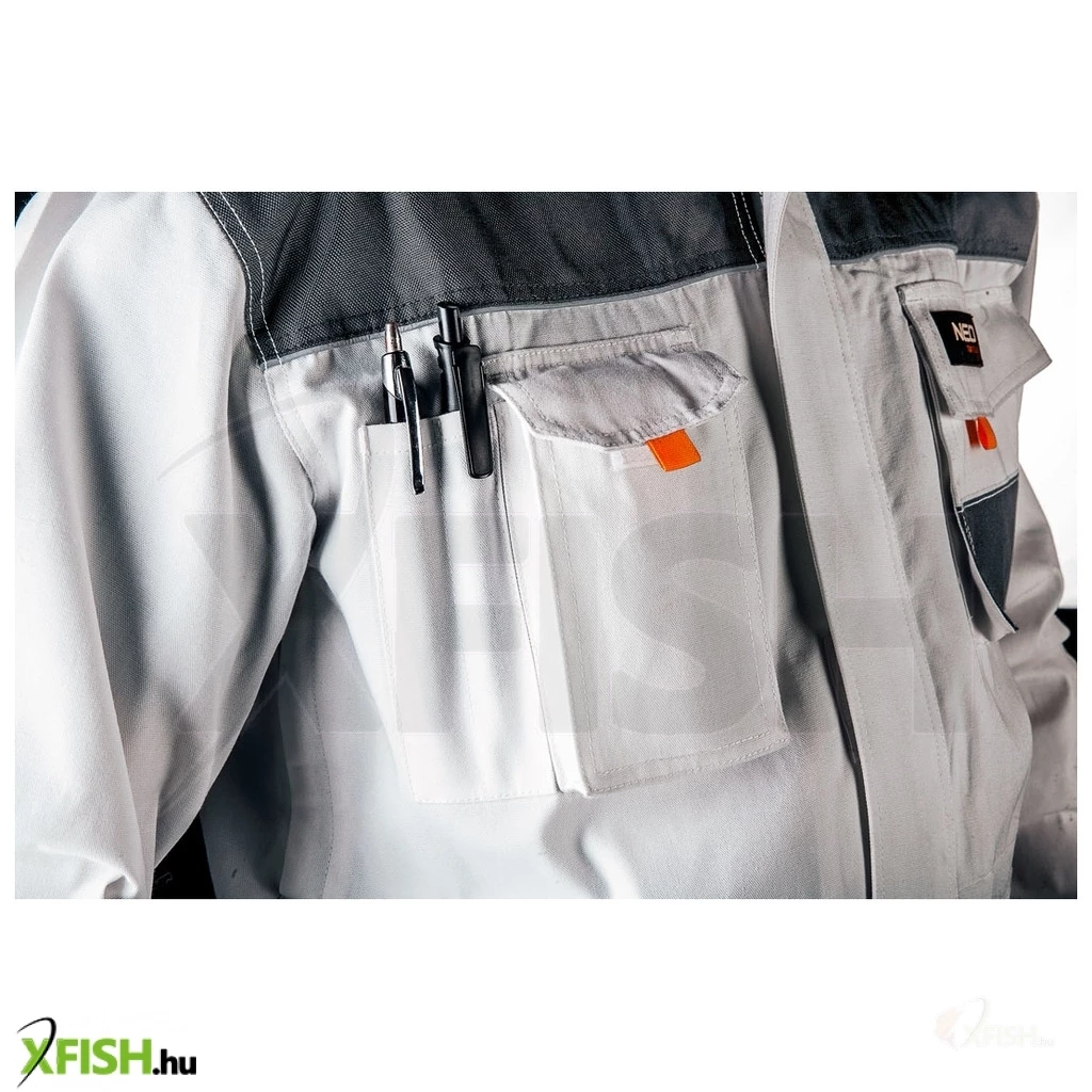 A kabát számos erősített zsebbel rendelkezik, amelyek lehetővé teszik, hogy minden fontos szerszám és eszköz biztos tárolásban legyen kéznél anélkül, hogy veszítenének a stabilitásukból akár intenzív mozgás során is. Tovább növelik a kabát funkcionalitását a fényvisszaverő elemek, amelyek extra láthatóságot biztosítanak, ezzel is emelve a munkavégzés biztonságát különösen rossz látási viszonyok között.