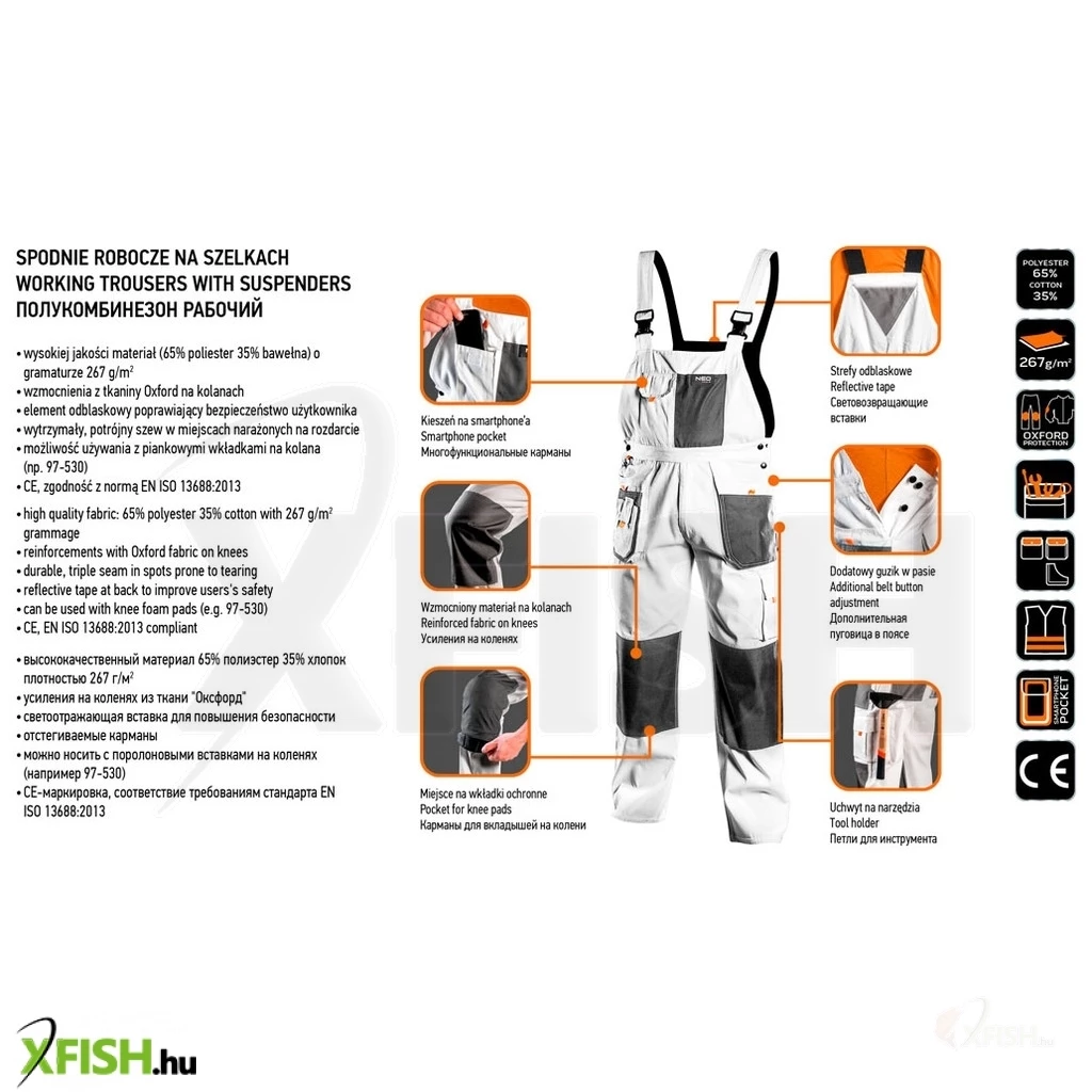 A 35% pamut és 65% poliészter összetételének köszönhetően a Neotools kantáros munkásnadrág kiemelkedően kényelmes viseletet biztosít, miközben tartósságot és jól szellőző tulajdonságokat kínál. A 267 g/m² súlyú szövet nemcsak erős, hanem rugalmas is, így könnyen mozgatható benne, anélkül, hogy korlátozná a mozgást. Az Oxford anyagú erősítések és az erősített zsebek a nadrág kritikus pontjain végzett munkavégzés során is védelmet nyújtanak a kopás ellen, biztosítva a hosszú élettartamot.