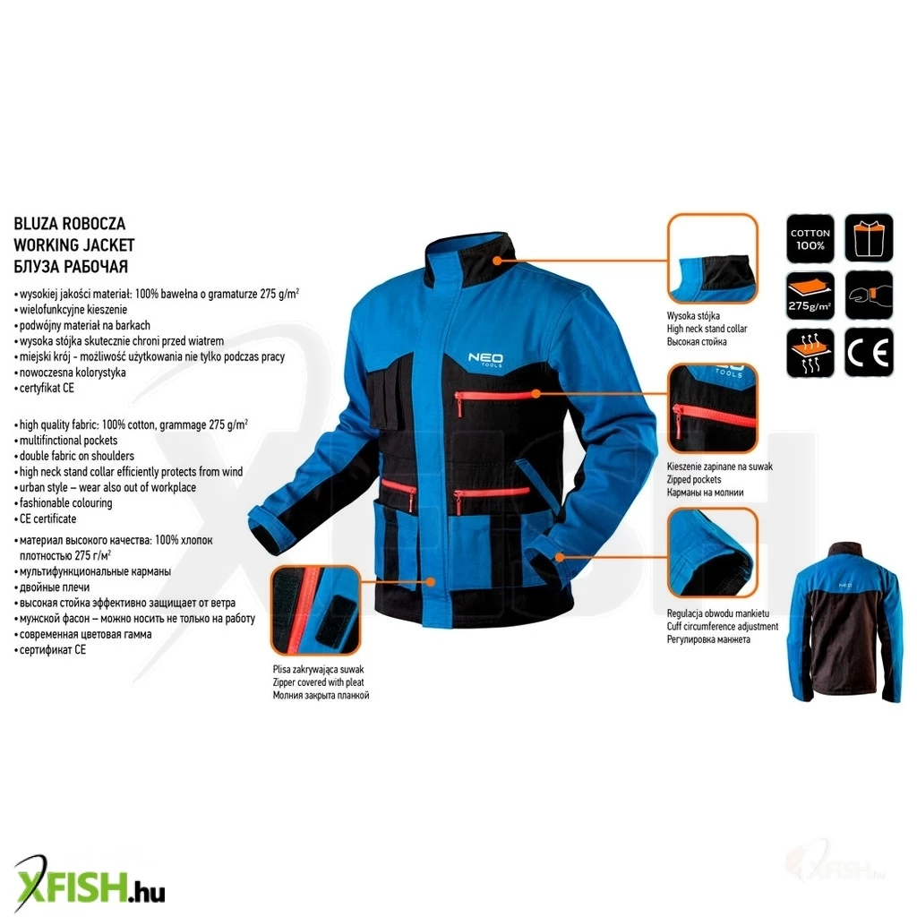 A Neotools munkadzseki hd+ kiemelkedő minőséget és kényelmet kínál azoknak, akik számára fontos a megbízható védőfelszerelés a kemény munka során. Ez a munkadzseki 100% pamut anyagból készült, ami nemcsak légáteresztő, hanem rendkívül tartós is. A 275 g/m2 sűrűségű pamutanyag biztosítja a dzseki hosszú élettartamát és ellenállását a különböző igénybevételeknek, így kiváló választás hosszú távú használatra bármilyen munkakörnyezetben.