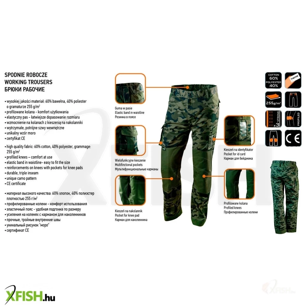 KategóriákKategóriákMunkavédelmi ruházat Munkavédelmi Nadrág Neotools terepmintás munkásnadrág,camo, 60% pamut, 40% polyester, 255 g/m2, XL