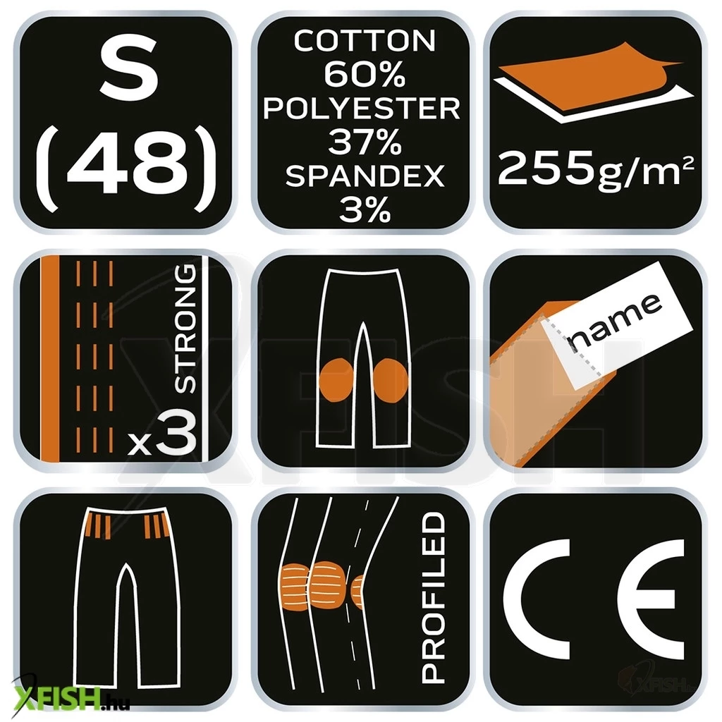 - Anyagösszetétel: 60% pamut, 37% poliészter, 3% elasztán