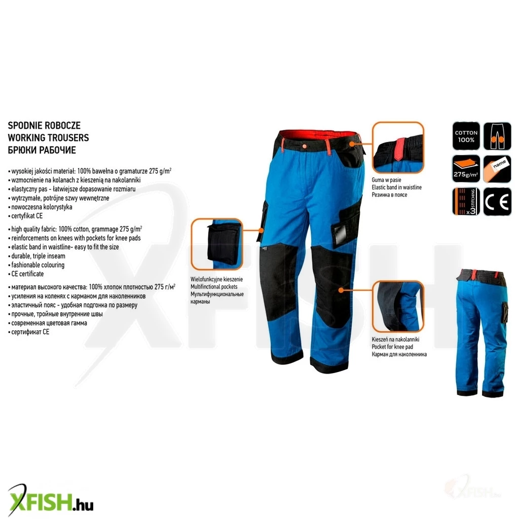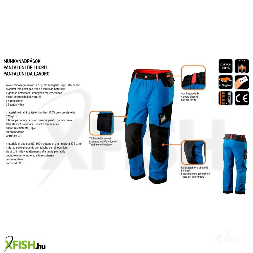 A Neotools munkanadrág HD+ a kényelem és a tartósság tökéletes kombinációját kínálja, amit a horgászok és a különféle kültéri tevékenységeket végzők is nagyra értékelnek. Ez a prémium minőségű munkanadrág 100% pamut anyagból készült, amely 275 g/m² súlyú, így erős és strapabíró védelmet nyújt még a hosszabb túrák és intenzív munkavégzés során is. A pamut anyaga nem csak kényelmes, de jól szellőzik is, ami hosszú időn át tartó viselés esetén is megfelelő komfortérzetet biztosít.