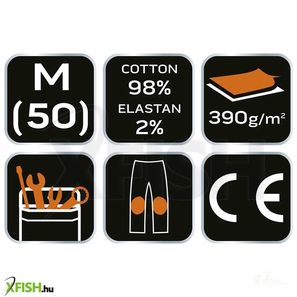 Neotools farmer munkásnadrág, denim, 98% pamut, térdvédő betét zsebbel, gombos oldalzsebekkel, 255 g/m2, M