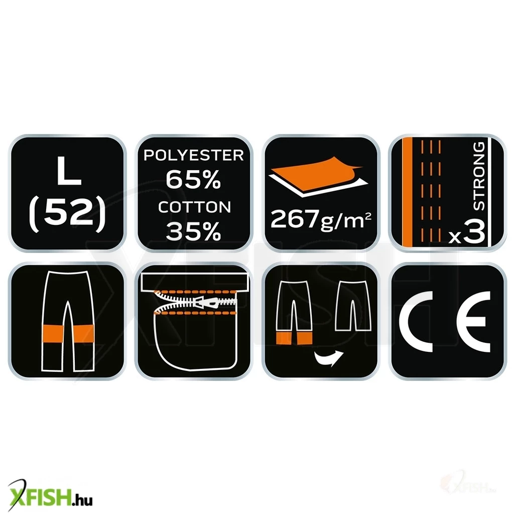 A Neotools munkásnadrág ideális választás minden horgász számára, aki nemcsak kényelmet, hanem maximális védelmet is keres a horgászattal töltött órák alatt. A nadrág 65% poliészter és 35% pamut összetételének köszönhetően kiváló tartósságot és kellemes viseletet biztosít. A 267 g/m² sűrűségű anyag biztosítja a megfelelő ellenállást az igénybevétellel szemben, miközben légáteresztő marad, hogy egész nap száraz és kényelmes érzést nyújtson.