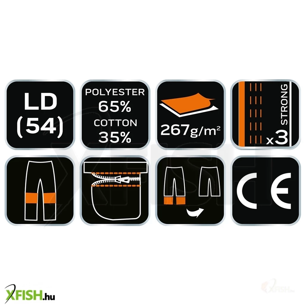 Az Oxford anyagú erősítések különösen a sérülékeny területeken biztosítják a nadrág hosszú élettartamát, a tripla varrások pedig növelik a tartósságot és megbízhatóságot. Az erősített zsebek ideálisak a horgászathoz szükséges eszközök és kisebb szerszámok tárolására, így minden könnyen és gyorsan elérhető. A nadrágszárak térd alatt lezippzározhatóak, így könnyedén rövidnadrággá alakítható, ami különösen hasznos lehet melegebb időben vagy beltéri munkák során.