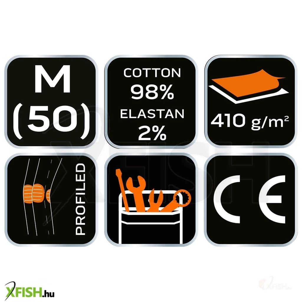 A Neotools farmer munkásnadrág egy olyan termék, amely tökéletesen ötvözi a divatot és a funkcionalitást, ideális választás azok számára, akik kényelmes, mégis tartós ruházatot keresnek a mindennapi munkavégzéshez. A nadrág 98%-ban kiváló minőségű pamutból készült, amely biztosítja a maximális kényelmet és légáteresztő képességet a viselő számára, még hosszabb használat során is. A 410 g/m2 súlyú, sűrű szövésű anyagának köszönhetően a nadrág elég erős ahhoz, hogy ellenálljon a komolyabb igénybevételnek is, ugyanakkor könnyen kezelhető marad, mosás után is megőrzi eredeti formáját.