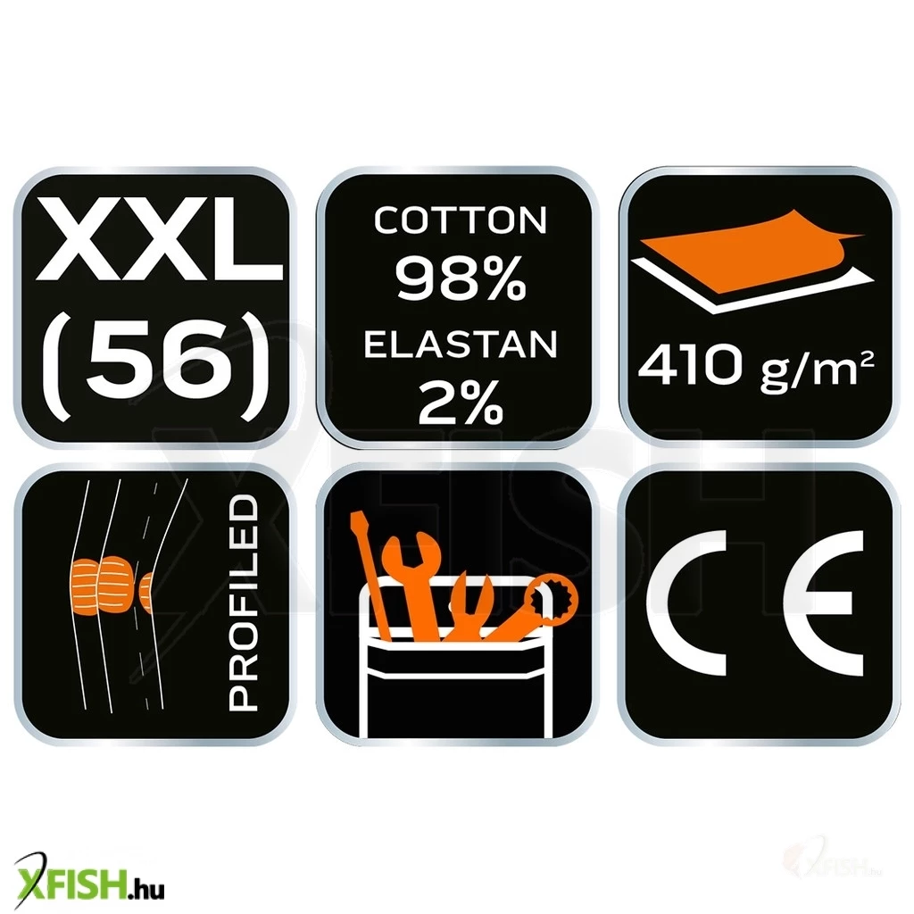 A farmert úgy tervezték, hogy maximális kényelmet és mozgásszabadságot nyújtson, így a horgászat közben semmilyen tevékenységben nem korlátozza viselőjét. A kiváló minőségű 98% pamut anyag biztosítja a megfelelő légáteresztő képességet, amely hosszabb viselés során is frissességet garantál. A 410 g/m2 súly pedig a tartósságot és az időtálló használatot teszi lehetővé, ellenállva a mindennapi kihívásoknak, melyek a kültéri munkák során felmerülhetnek.
