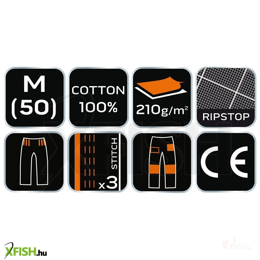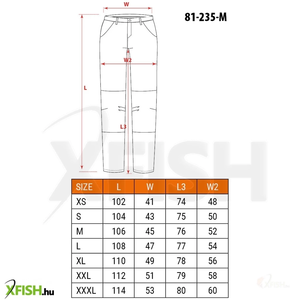- Főbb jellemzők: motosynteza technológia, háromsoros varratok, térdprotektor zseb