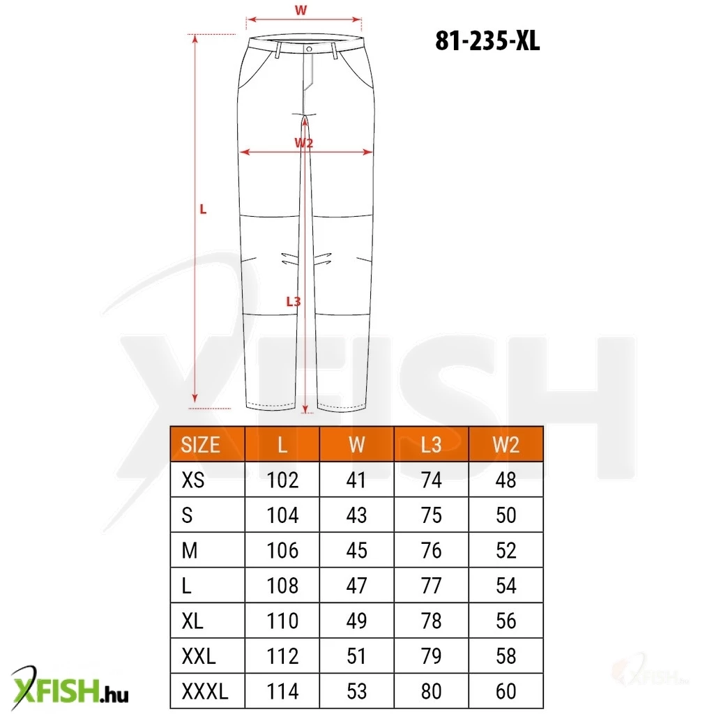 - Kialakítás: Térdprotektor zseb, szakadásmentes szövet