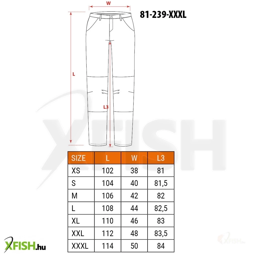 - Nemzetközi méretezés: XXXL