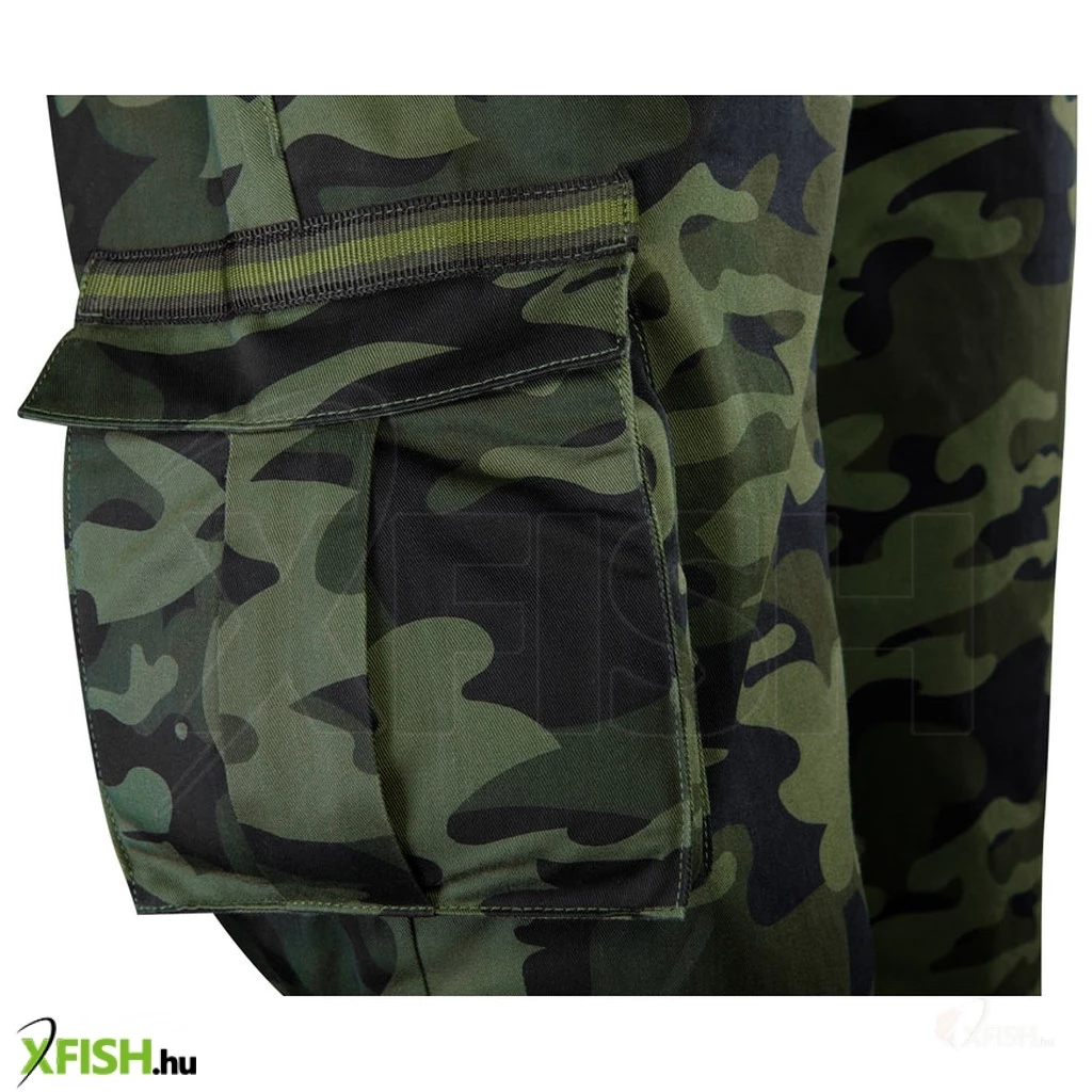 A nadrág kantáros kialakítása biztos tartást és optimális mozgásszabadságot biztosít, míg a terepmintás design hozzájárul a diszkrét beolvadáshoz a természeti környezetbe, ami különösen előnyös horgászat vagy vadászat során. Az Oxford anyagú erősítések és erősített zsebek megakadályozzák a gyors kopást, így a nadrág hosszú távon megbízható társ a különböző tevékenységek során. A fényvisszaverő elemek a hátoldalon segítenek a láthatóság fenntartásában rosszabb fényviszonyok között is, ezzel növelve a biztonságot.