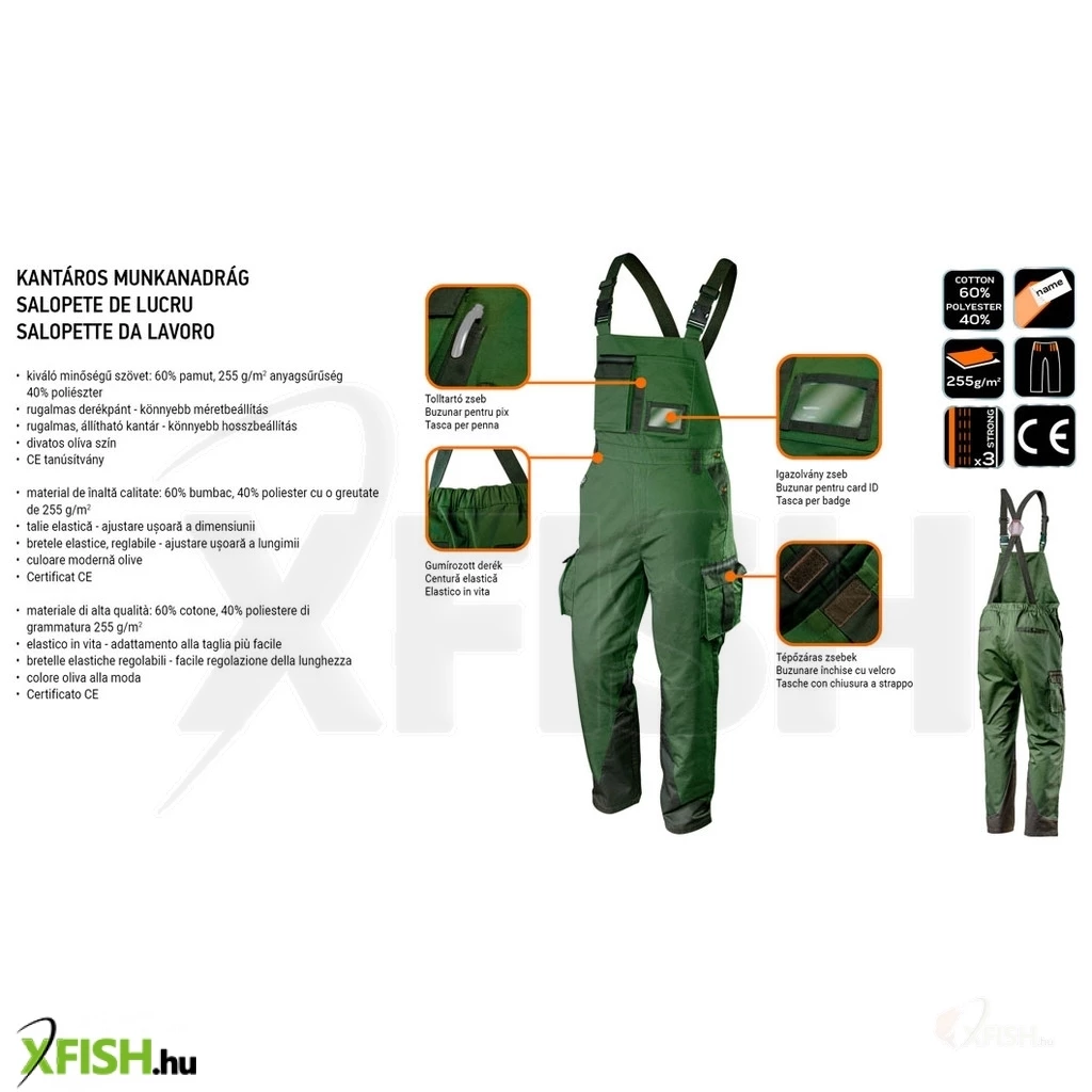 Neotools kantáros munkanadrág olíva, 60% pamut, 40% polyester, 255 g/m2,xl