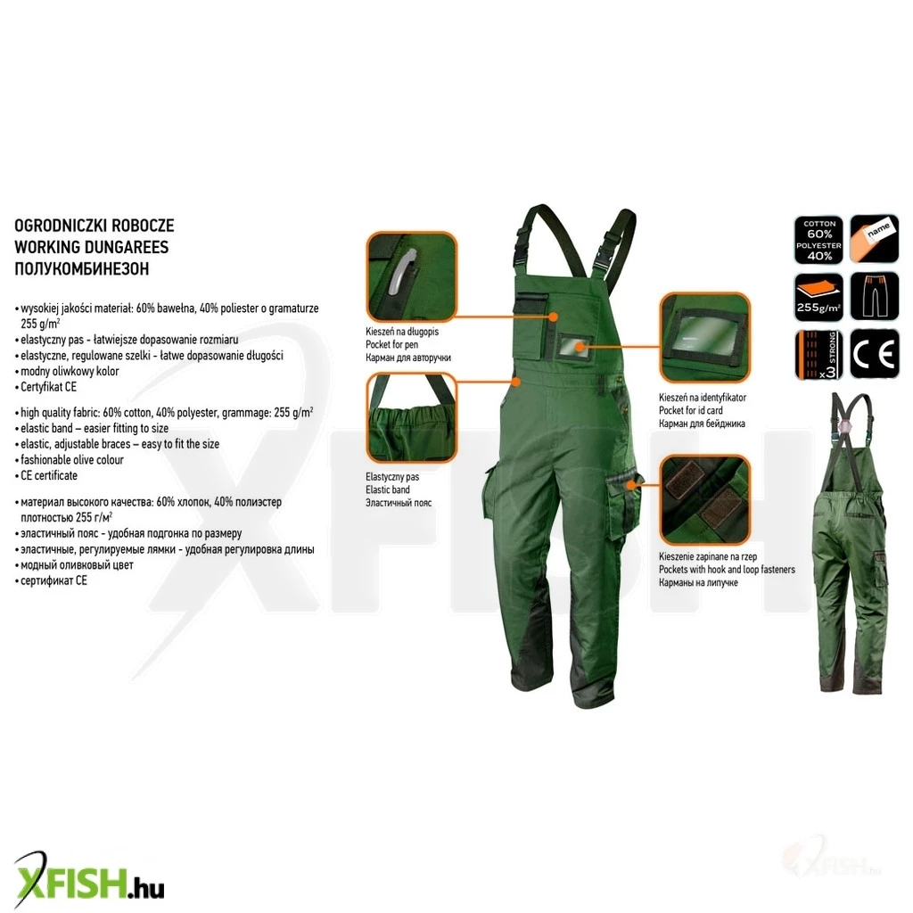 Neotools kantáros munkanadrág olíva, 60% pamut, 40% polyester, 255 g/m2,xs
