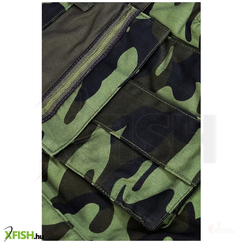 Ez a rövid munkásnadrág különleges terepmintázatával diszkréten beleolvad a természetes környezetbe, így kiváló választás horgászok számára, akik szeretnének észrevétlenek maradni. Az egyedi camo mintázat nemcsak esztétikai, hanem funkcionális előnyöket is kínál, például segít a rejtőzködésben különféle terepkörnyezetekben.