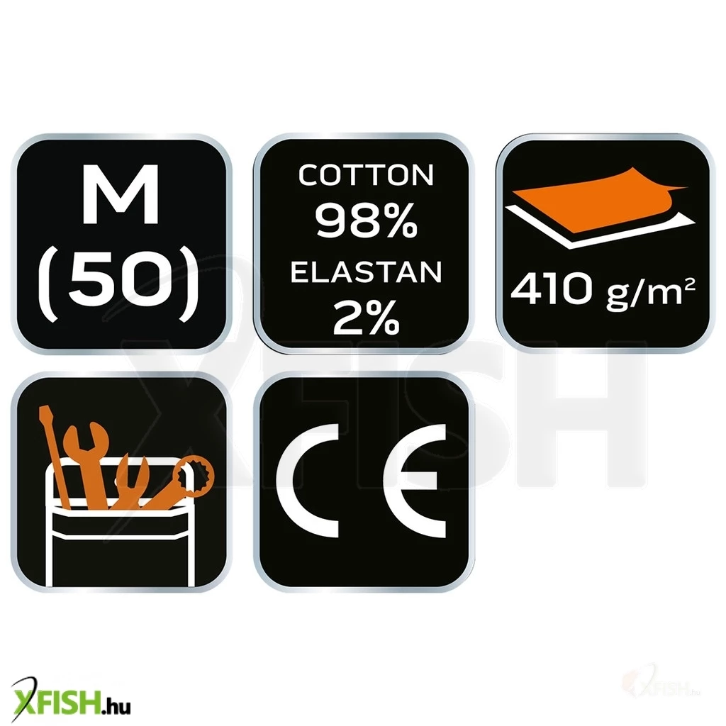 A Neotools farmer rövid munkásnadrág tökéletes választás azoknak a horgászoknak, akik nemcsak a vizek mentén, de a mindennapi műhelymunkák során is kényelmesen és biztonságosan szeretnék érezni magukat. Ez a nadrág a tartósság jegyében készült, hiszen anyaga 98%-ban prémium minőségű pamutból áll, amely a 410 gramm/m2 súlynak köszönhetően kiváló ellenállást és strapabírást biztosít.