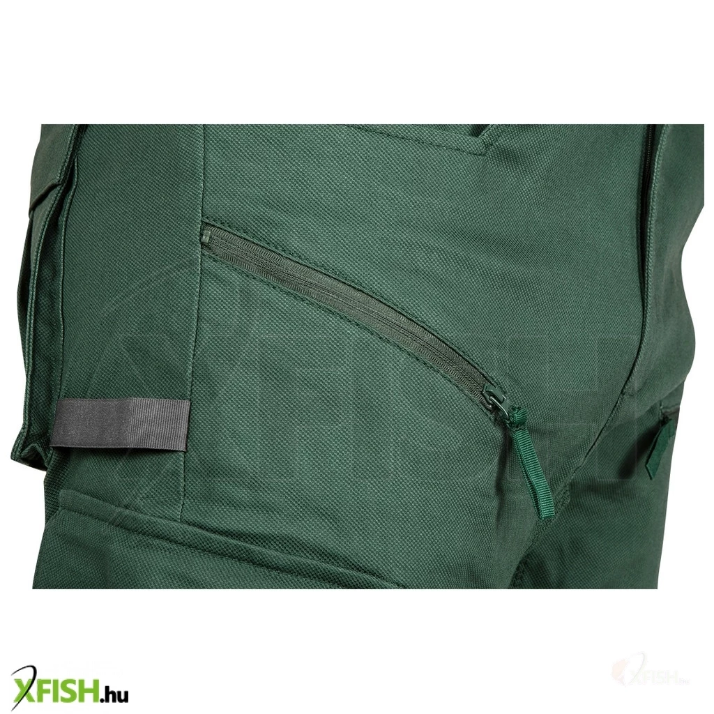 A zöld szín nemcsak természetes megjelenést kölcsönöz a nadrágnak, hanem praktikus is, hiszen beleolvad a környezetbe, így ideális választás vadászoknak és horgászoknak egyaránt. A nadrág több praktikusan elhelyezett zsebbel rendelkezik, amelyek lehetővé teszik, hogy a horgászeszközök, szerszámok, vagy akár a személyes eszközök is kéznél legyenek minden pillanatban.