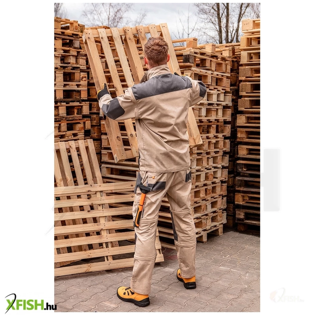 A 100%-os pamut anyagból készült munkaruházat nemcsak kényelmes viseletet biztosít, hanem kiváló légáteresztő képességgel is rendelkezik, így a legmelegebb napokon is friss érzést nyújt. A dzseki anyagának 180 g/m^2 sűrűsége erőt és tartósságot kölcsönöz, amely kiemelkedő kopásállóságot biztosít a mindennapi használat során. Az erősítésekkel ellátott részek külön figyelmet kaptak a tervezéskor, így azok a kopásnak leginkább kitett területeken is megőrzik a dzseki újszerű megjelenését.