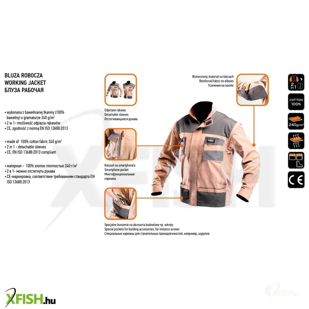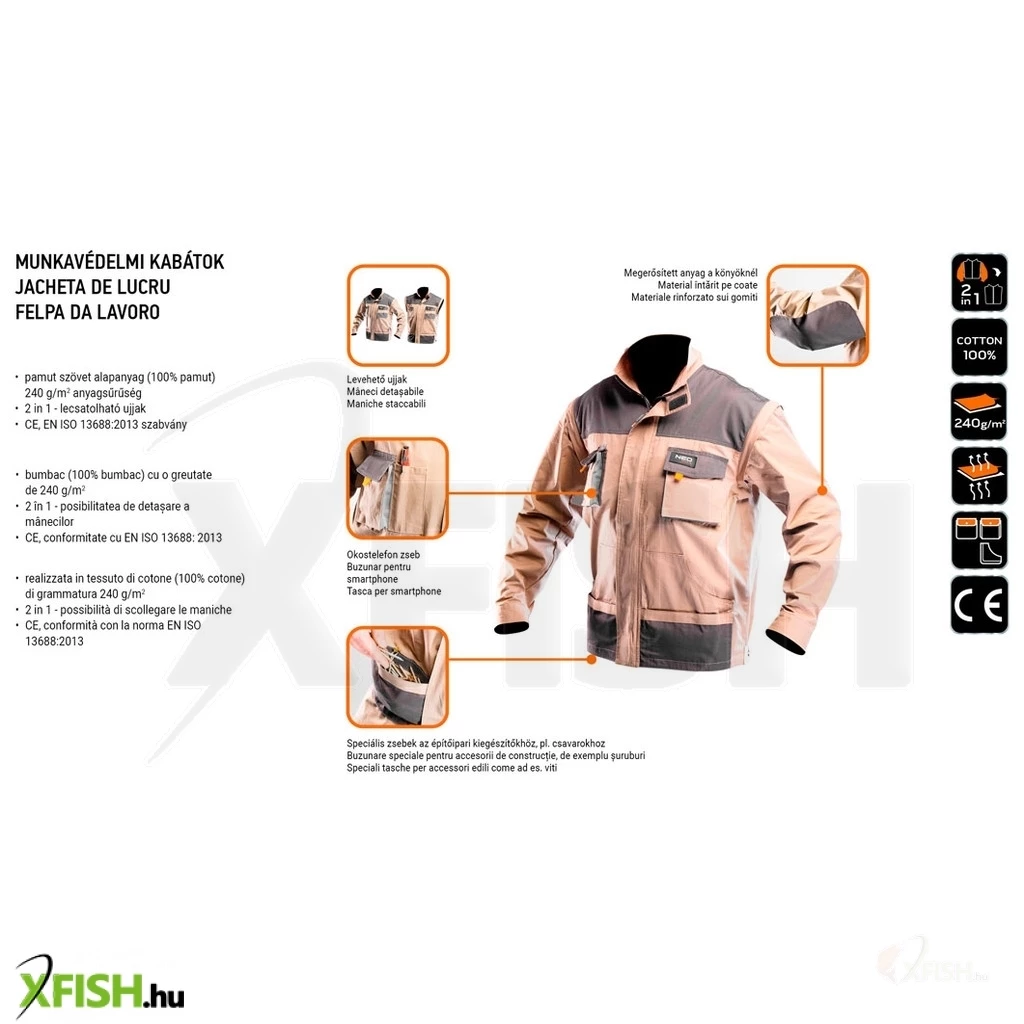 KategóriákKategóriákMunkavédelmi ruházat Munkavédelmi Kabát Neotools munkadzseki 2 az 1-ben, s/48 100% pamut, 180g/m2, lezippzározható újjak,