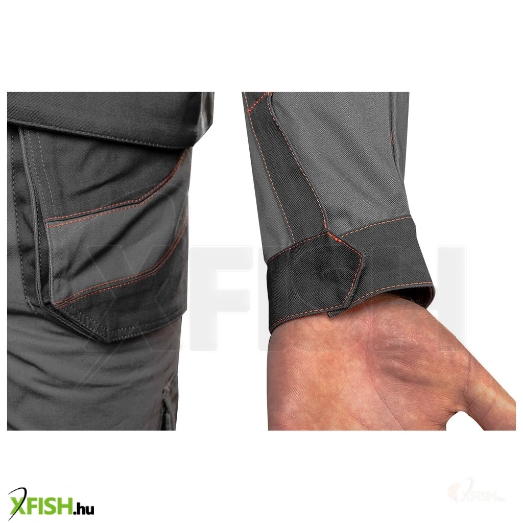 Ez a munkadzseki különös figyelmet szentel a részleteknek, hogy a viselő maximális komfortot élvezhessen. A profilozott könyök és a nagy, többfunkciós zsebek tökéletesen szolgálják ki a horgászok igényeit, legyen szó akár szerszámok, akár egyéb szükséges eszközök tárolásáról. A dzseki stratégiai pontjain, például a vállon és a könyökön dupla szövetréteg biztosítja az extra védelmet, míg a rejtett cipzár és a hajtóka kimagasló komfortérzetet és stílust kölcsönöz a viselő számára, melyet akár egy névcímkével is személyre szabhat.