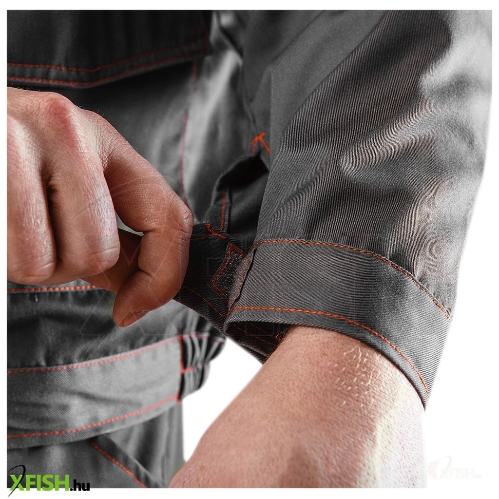 A kabát 245 g/m² anyagsűrűsége további garancia a hosszú élettartamra, miközben könnyedén ellenáll a mindennapi igénybevételnek és a nehezebb környezeti hatásoknak is. A többfunkciós zsebekkel kialakított dizájnja lehetővé teszi, hogy minden szükséges eszköz kéznél legyen, így növeli a munka hatékonyságát és kényelmét. A zsebek elhelyezése és mérete úgy lett kialakítva, hogy a legfontosabb eszközök, mint például a zsebcsipesz vagy a kisebb eszközök könnyedén és gyorsan elérhetők legyenek anélkül, hogy folyamatosan mozgatni kellene a kabátot.