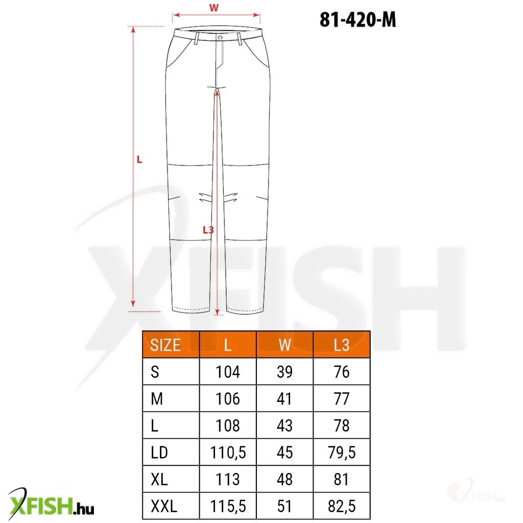 Fő jellemzők: többfunkciós zsebek, gumírozott derék