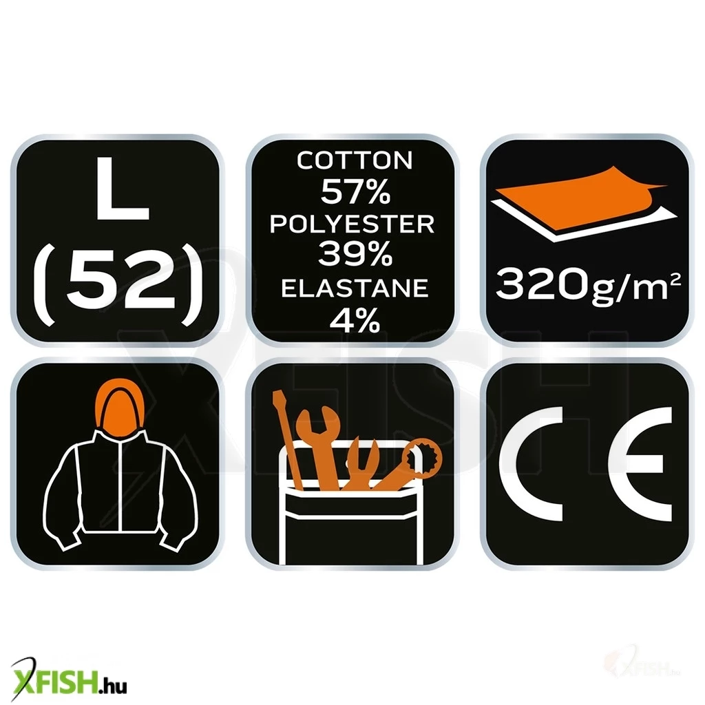 A Neotools szürke munkavédelmi pulóvere kapucnival, amely a COMFORT sorozat része, ideális választás minden horgász számára, aki kényelmet és biztonságot keres. Ez a hurkolt kötött pulóver egyaránt praktikus és stílusos, így megfelelő viselet a mindennapi horgászathoz és munkavégzéshez egyaránt. Az anyagösszetétel, amely 57% pamut, 39% poliészter és 4% elasztán, garantálja a tartósságot és a rugalmasságot, miközben a 320 g/m² anyagsúly optimális egyensúlyt nyújt a kényelem és a védelem között.