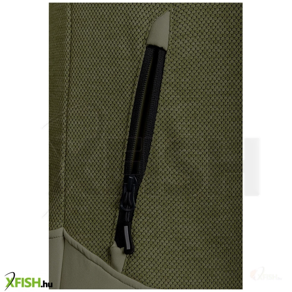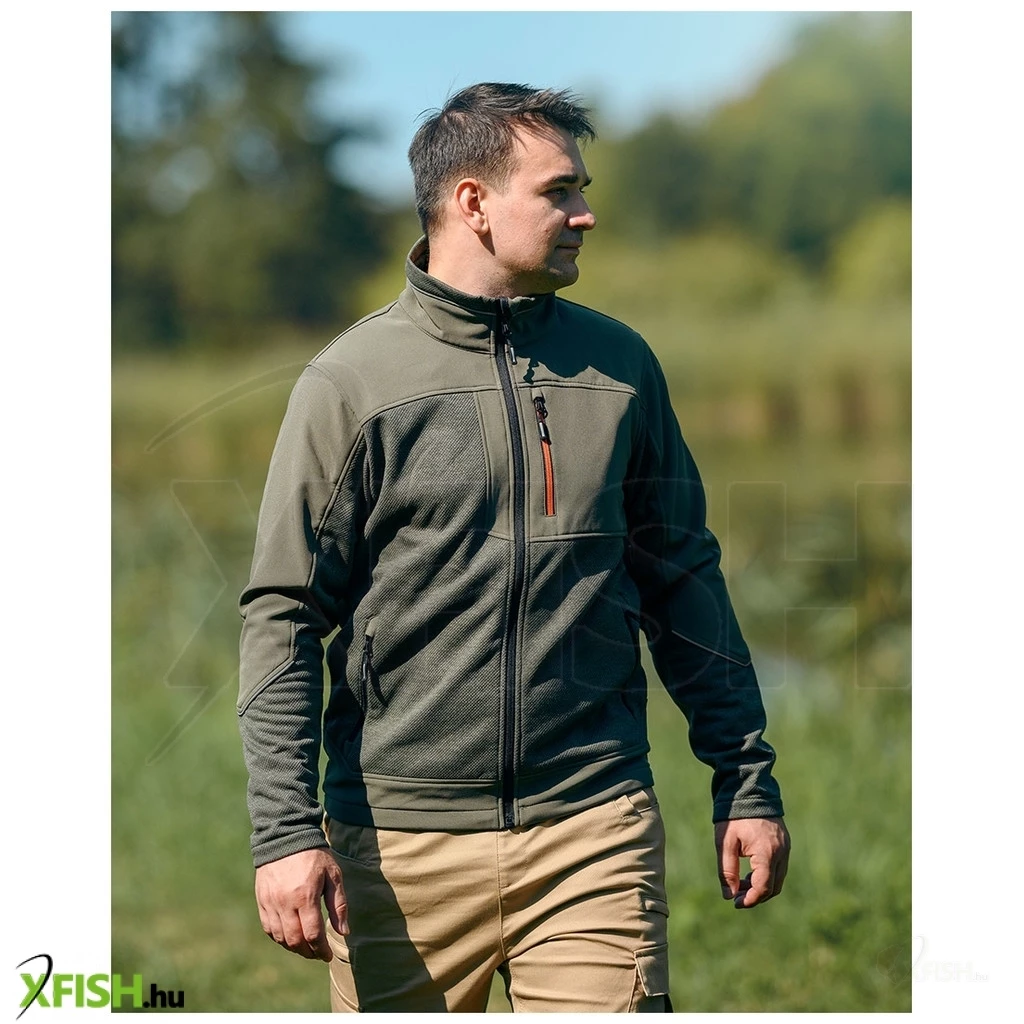 A softshell anyaga rendkívül ellenálló a külső elemekkel szemben, miközben szél- és vízálló tulajdonsága megvédi viselőjét a zord időjárási viszonyokkal szemben. A légáteresztő anyag és a kabát ergonomikus kialakítása lehetővé teszi a szabad mozgást és a maximális kényelmet az egész napos horgászat során.