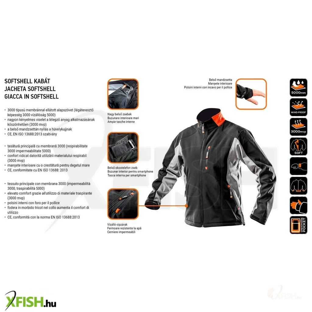 Neotools softshell munkavédelmi kabát, víz- és szélálló, s/48 vízálló (5000mm), szellőztető szelepek (3000mpv), S